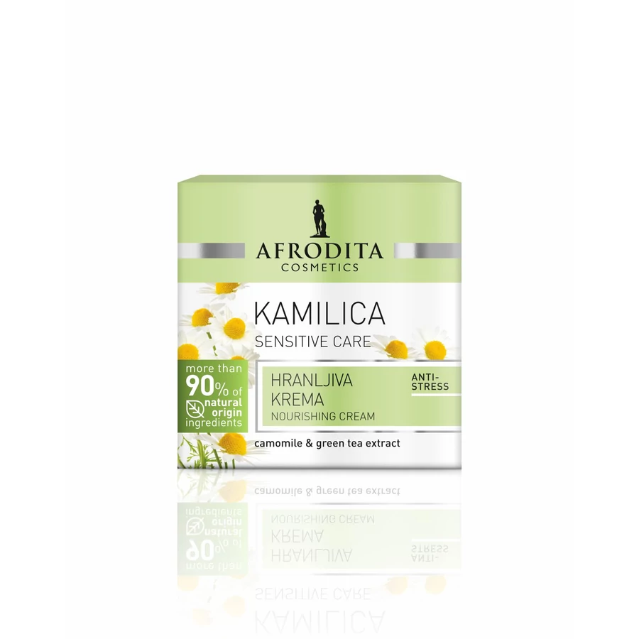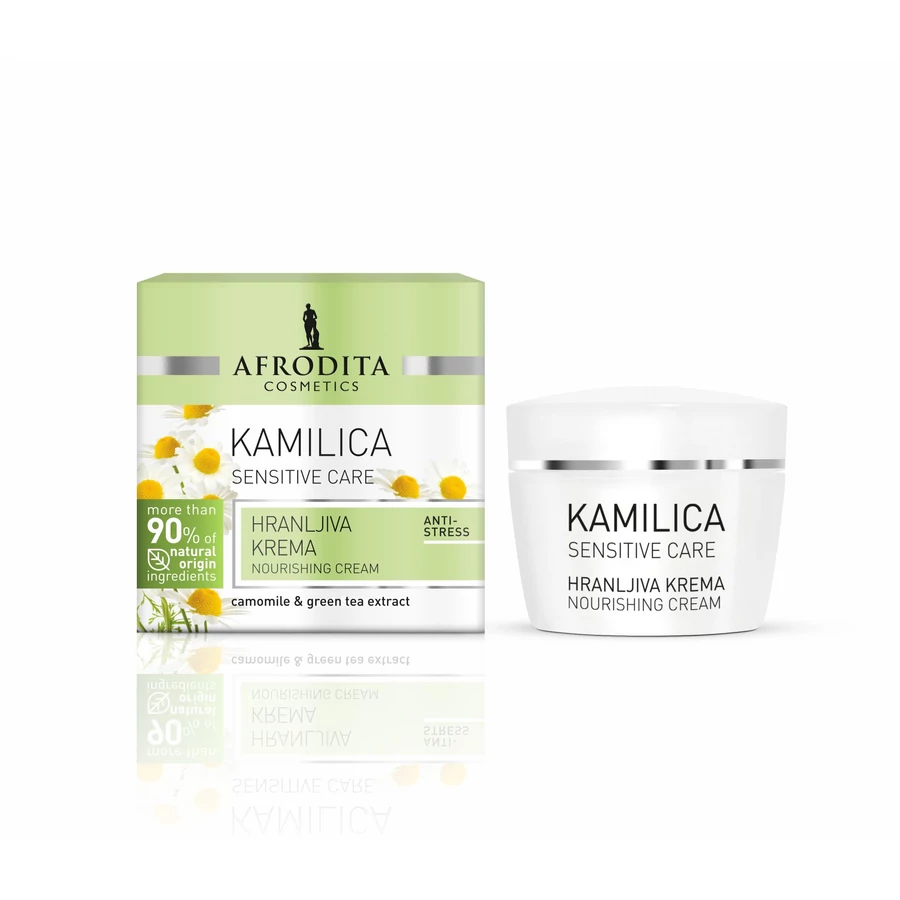 A természetes kamilla kivonat megnyugtatja a száraz és érzékeny bőrt, valamint lelassítja az öregedési folyamatokat. A bőr számára kellemes tápláló képlet serkenti a sejtújító folyamatokat, erősíti a bőr struktúráját és immunrendszerét. Használatával a bőr erőteljesen táplált, regenerált, sima, feszes külsőt ölt, míg az apró ráncok kisimulnak. Megszűnik a bőr kellemetlen „feszülő” érzete.